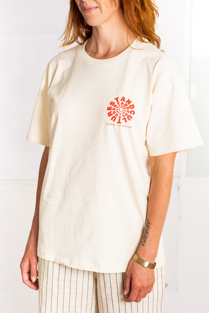 STAND CULTURE CIRCLE DRISHTI TEE - RED ON CREAM (Lightweight)